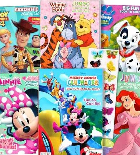 Sobre este item: Este conjunto de livros de colorir clássicos da Disney para crianças inclui 6 livros de colorir exclusivos de toda a produção clássica da Disney e adesivos de borboletas 3D bônus. Livros com personagens da Disney, incluindo Mickey Mouse, Minnie, Pequena Sereia, Toy Story, 101Dálmatas e Ursinho Pooh 6 livros de colorir: