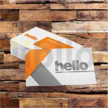 Cartão de visitas com Laminação Fosca e Verniz Localizado é ideal para cientes mais exigentes ou que precisam de um acabamento diferenciado. A laminação fosca proporciona um aspecto sedoso ao material e o verniz localizado destaca certas informações com brilho e um pequeno relevo.